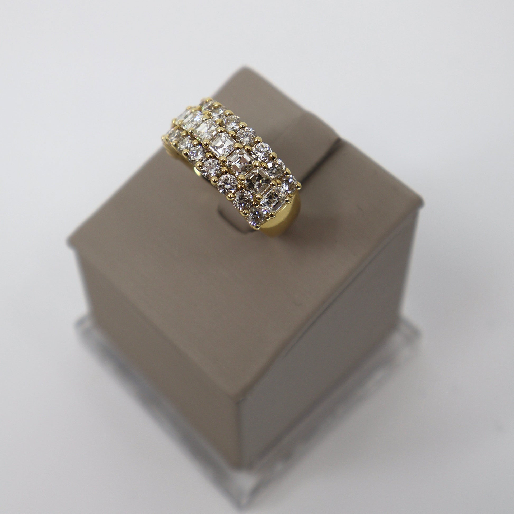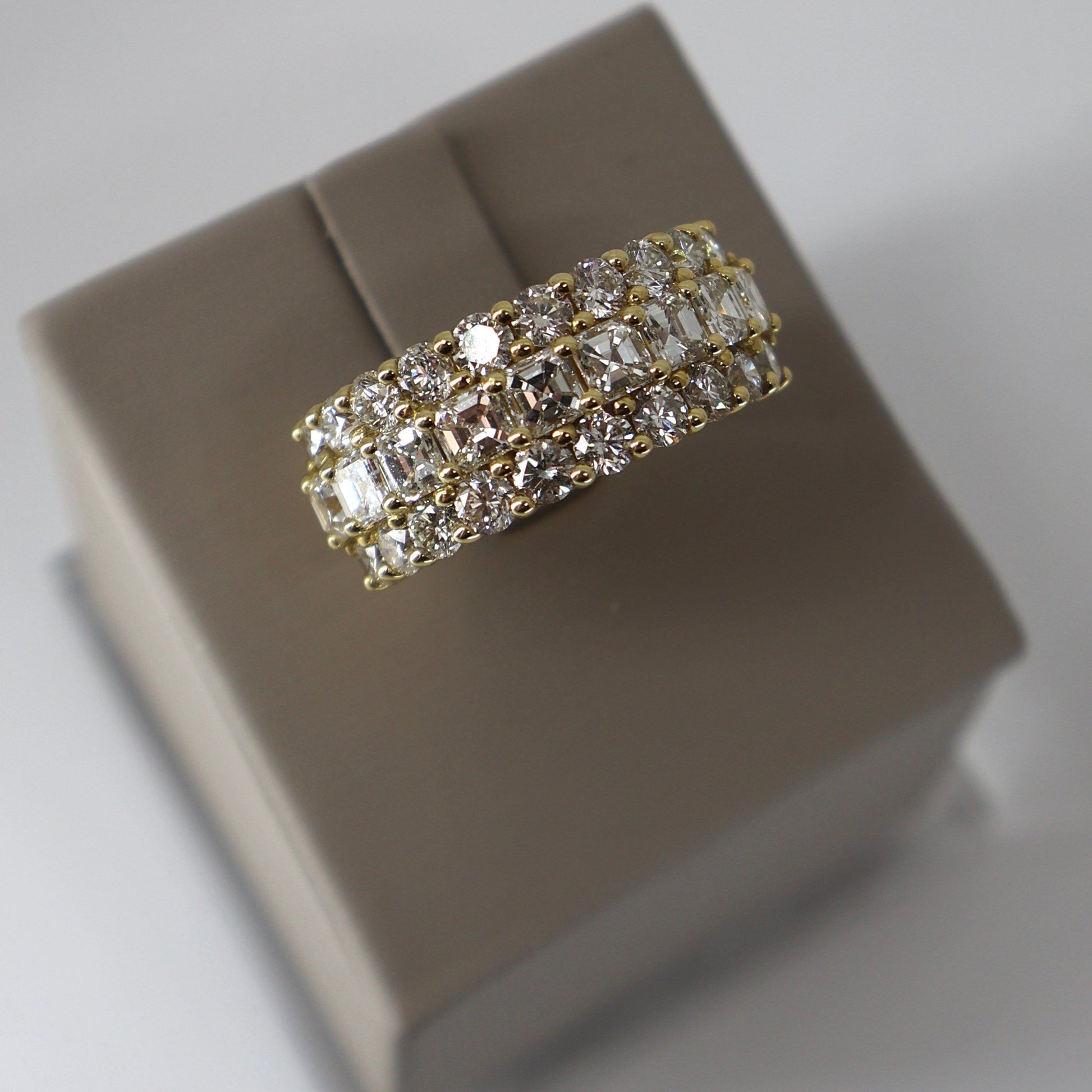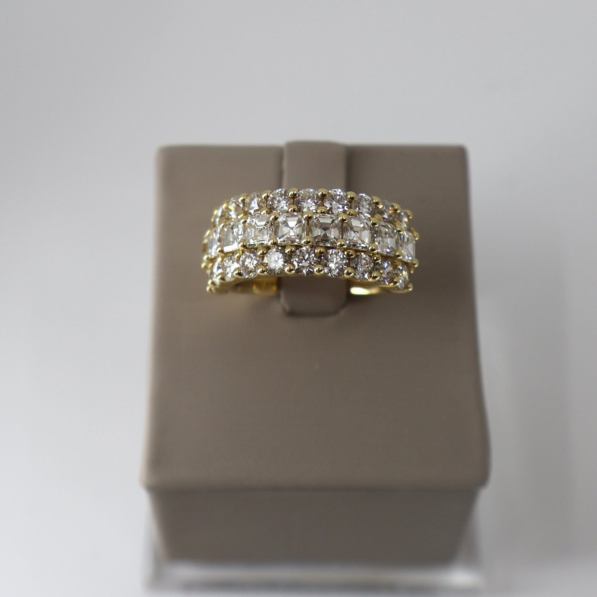 18KY 6.14CTW 20 ROUND DIAMOND / 9 ASSCHER CUT DIAMOND TRIPLE ROW RING