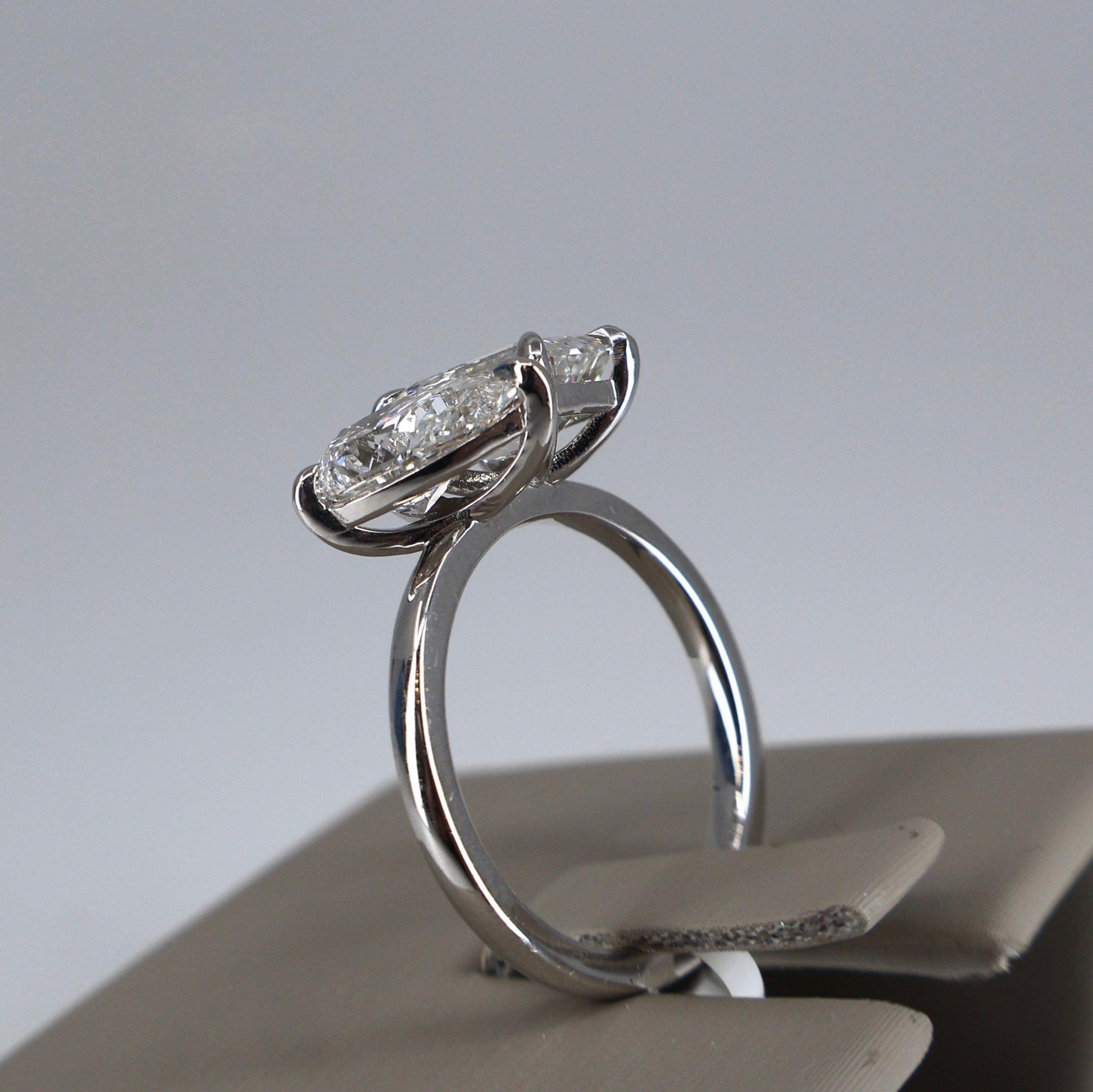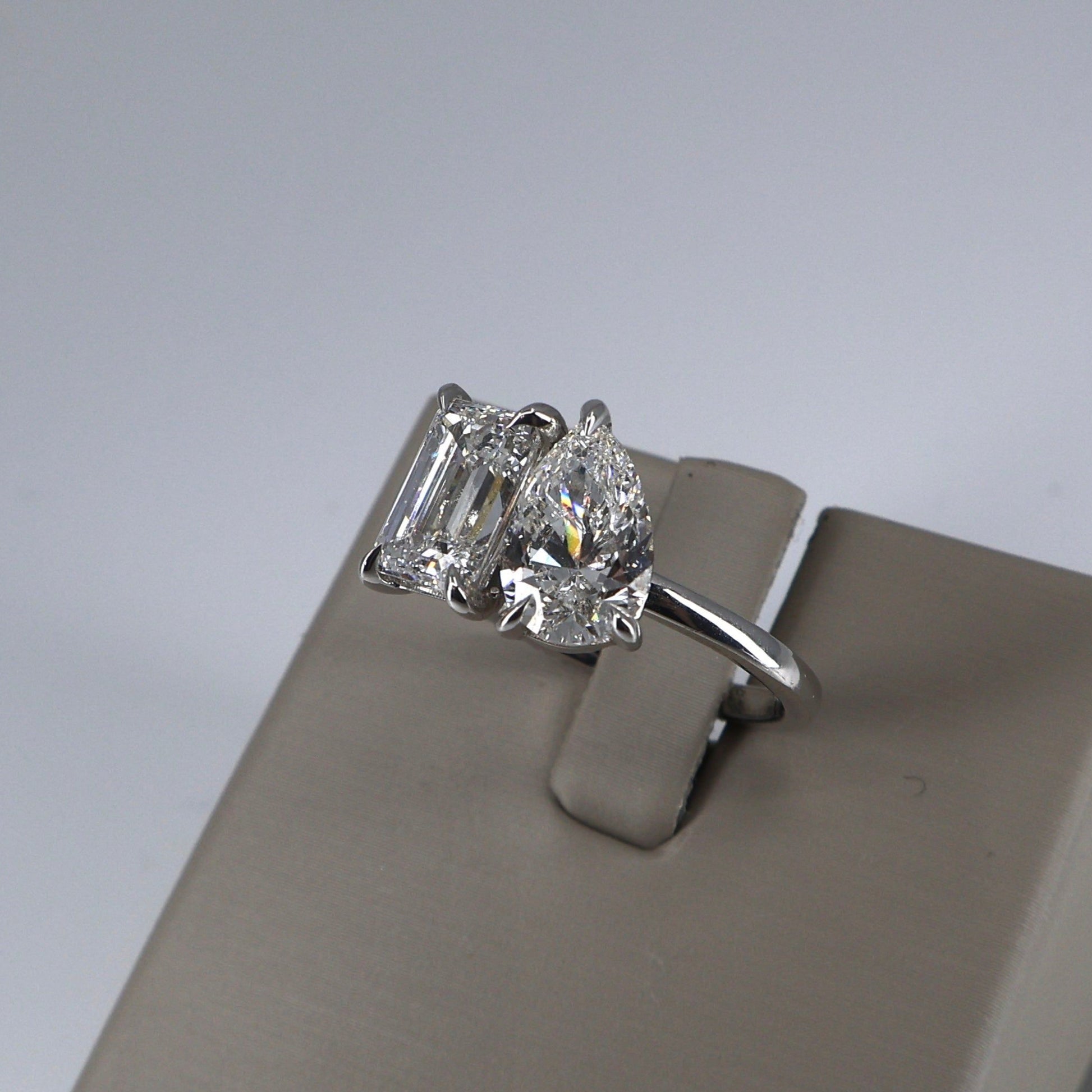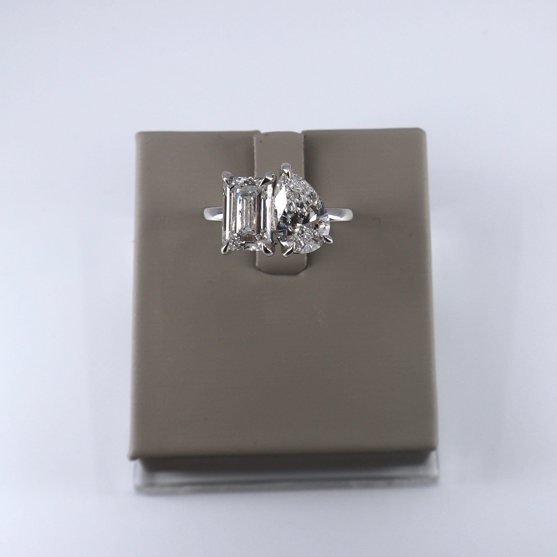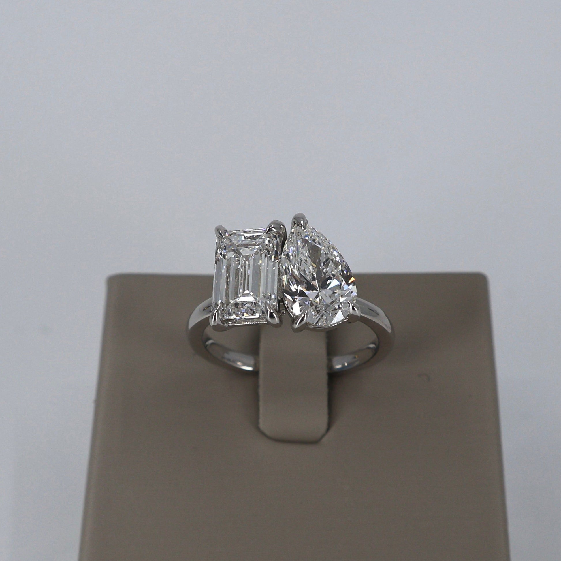 LAB GROWN 14KW 2.03 EMERALD CUT DIAMOND E/VS1 (IGI CERTIFIED) AND 1.76 PEAR SHAPE DIAMOND E/VS1 2 STONE RING (IGI CERTIFIED) LABDRCD741