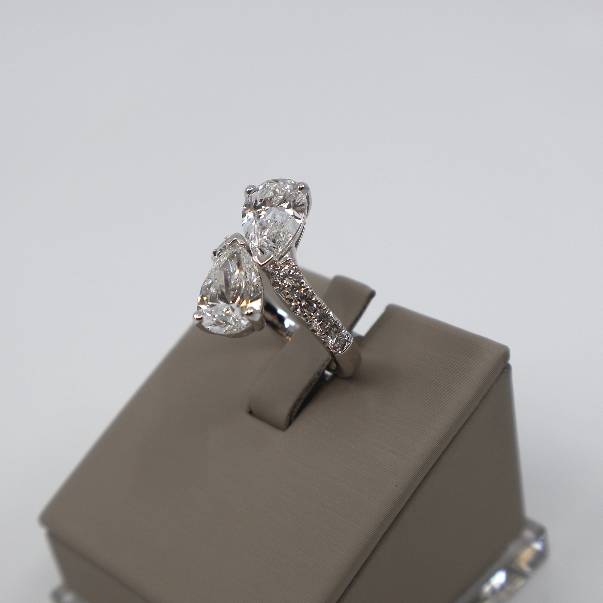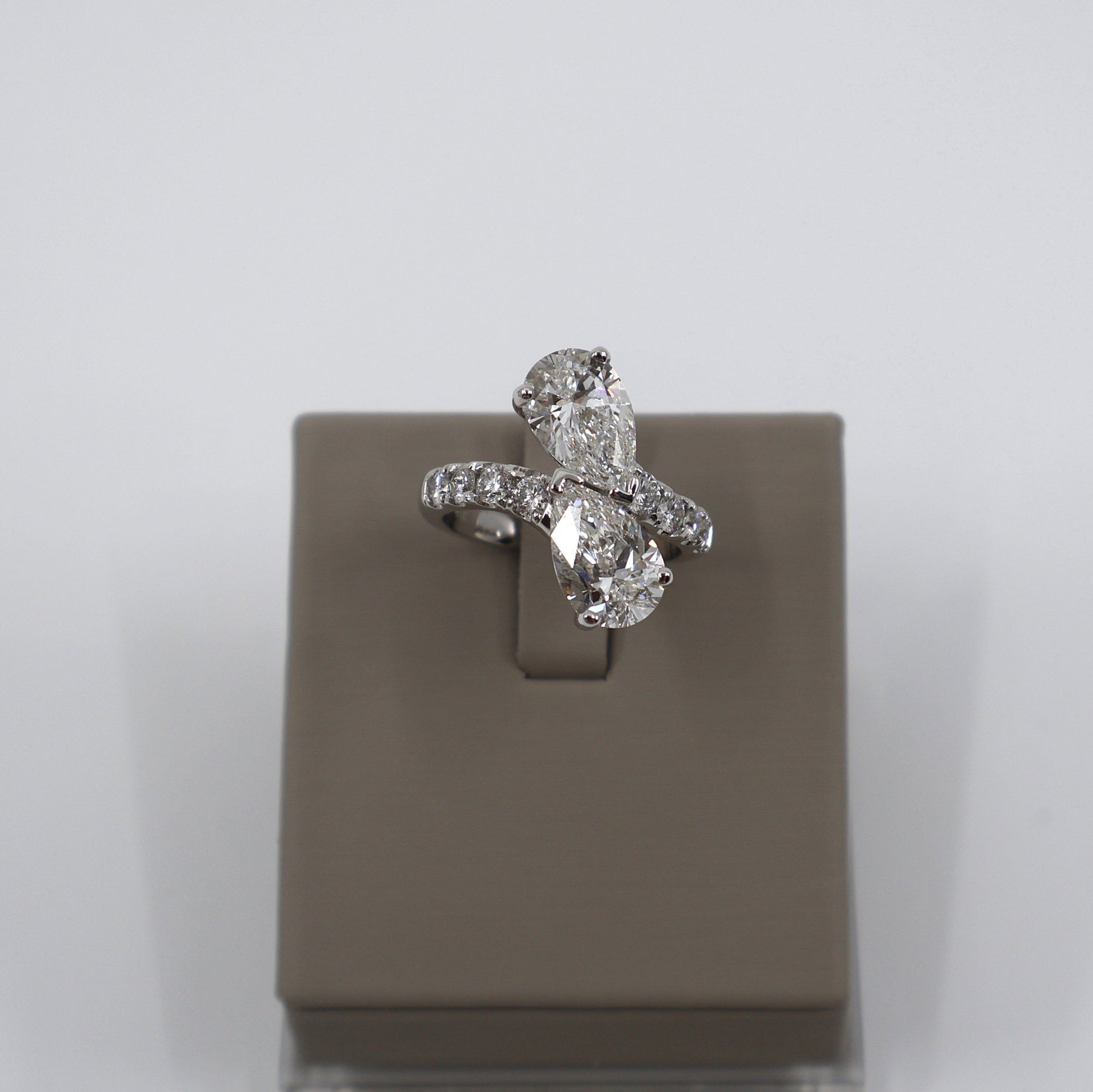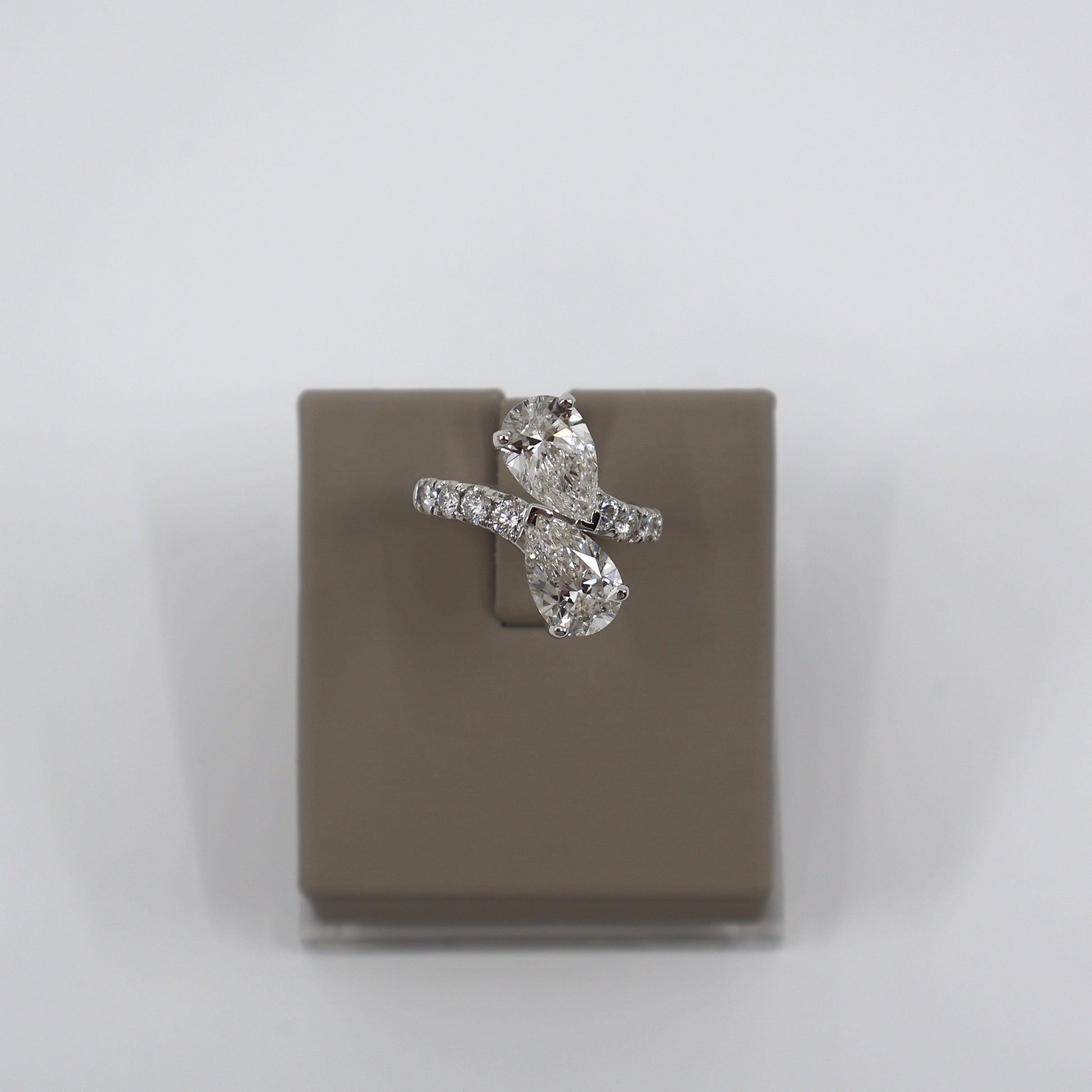 LAB GROWN 14KW .64CTW 8 ROUND DIAMONDS / 4.11 CT 2 PEAR SHAPE DIAMONDS / EVVS2 BYPASS RING LABDRCD798