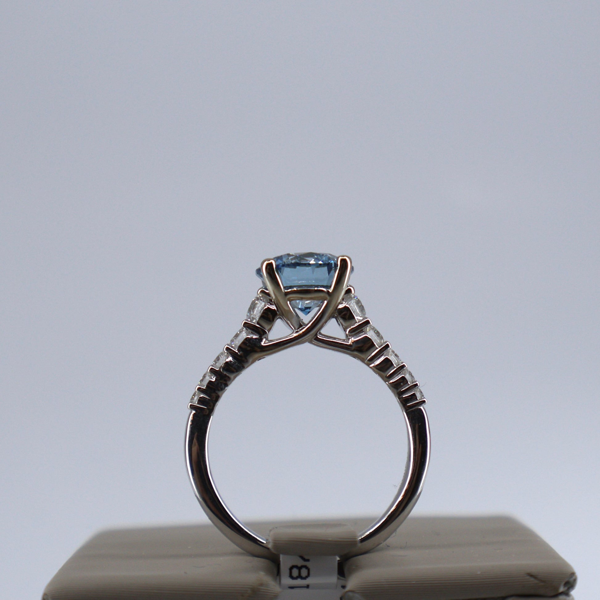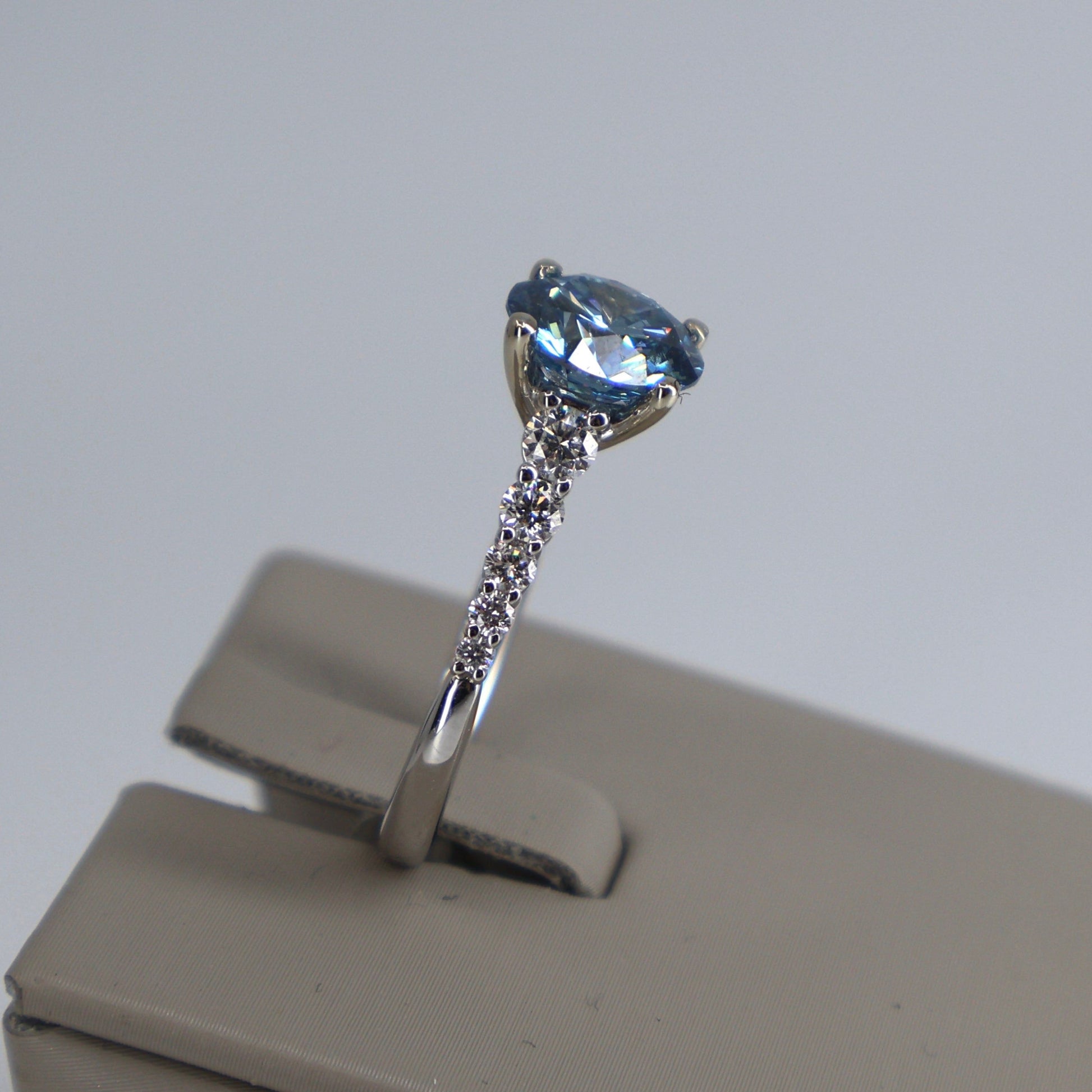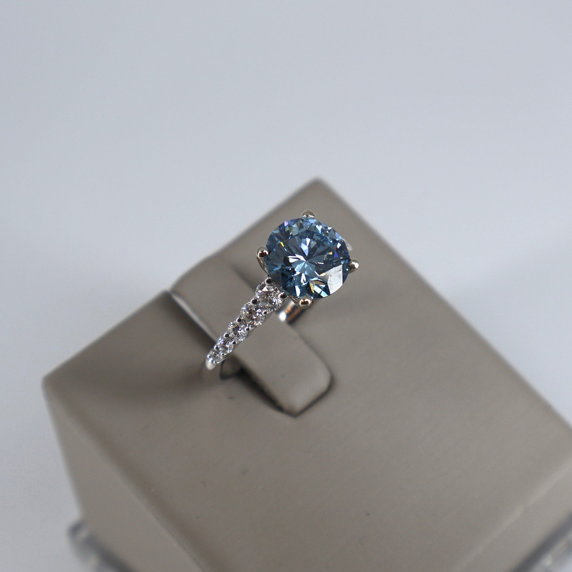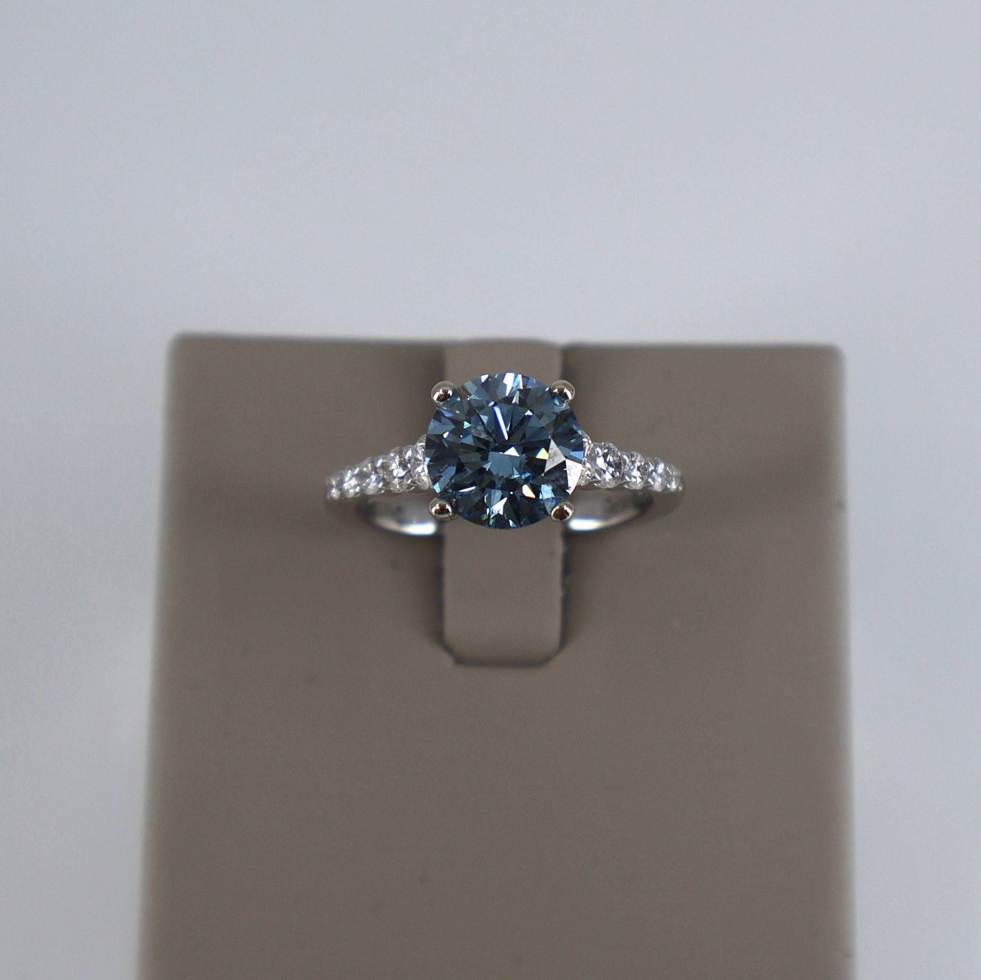 LAB GROWN 14KW .50CT GRADUATING 10 ROUND DIAMONDS / 2.56CT ROUND BLUE CENTER DIAMOND RING LABDRCD591