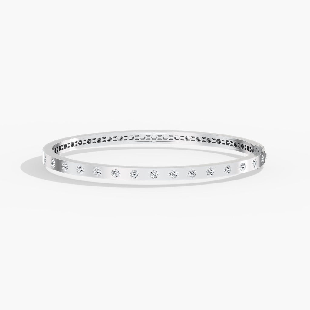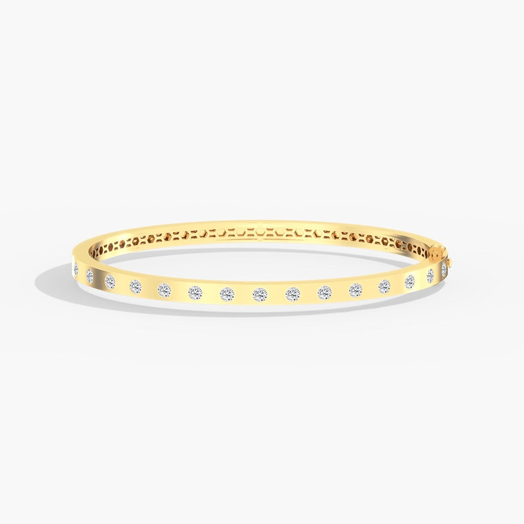 Refined and timeless, this 14K gold bangle bracelet features a seamless inlay of round diamonds totaling 1.09 carats. Each stone is expertly set to create a smooth, continuous surface of brilliance, offering a clean and polished look. The classic round diamonds deliver exceptional sparkle, while the inlay design adds a modern, sophisticated touch. Crafted in solid 14K gold, this elegant bangle is perfect for everyday wear or elevating special occasion styling.