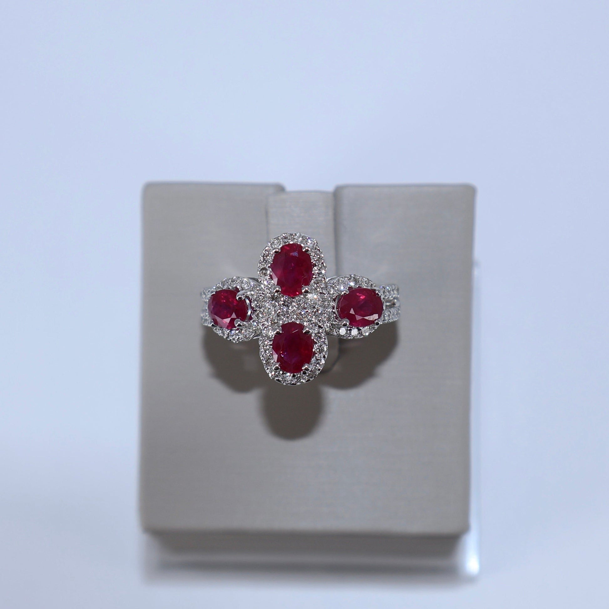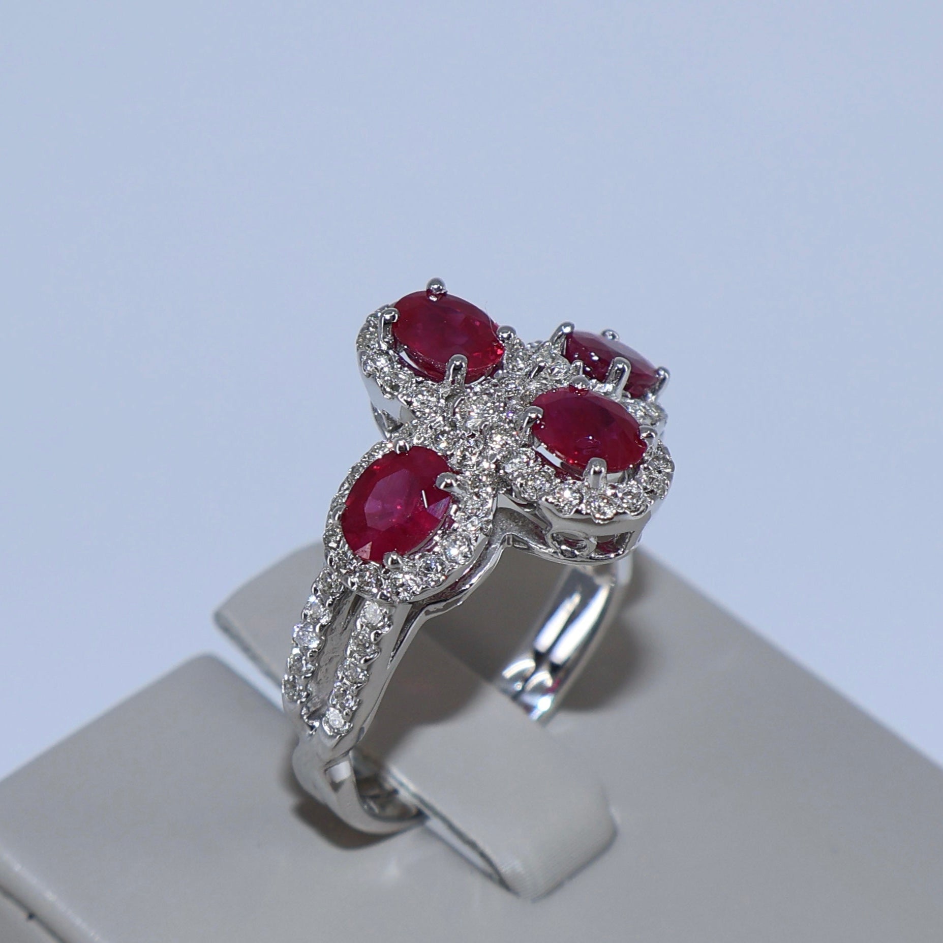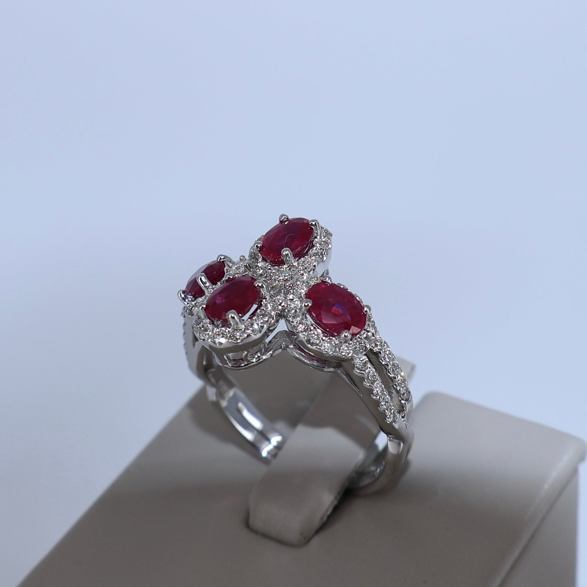 14KW .60CTW 4 HALOS / 1.60CTW 4 OVAL RUBY RING
