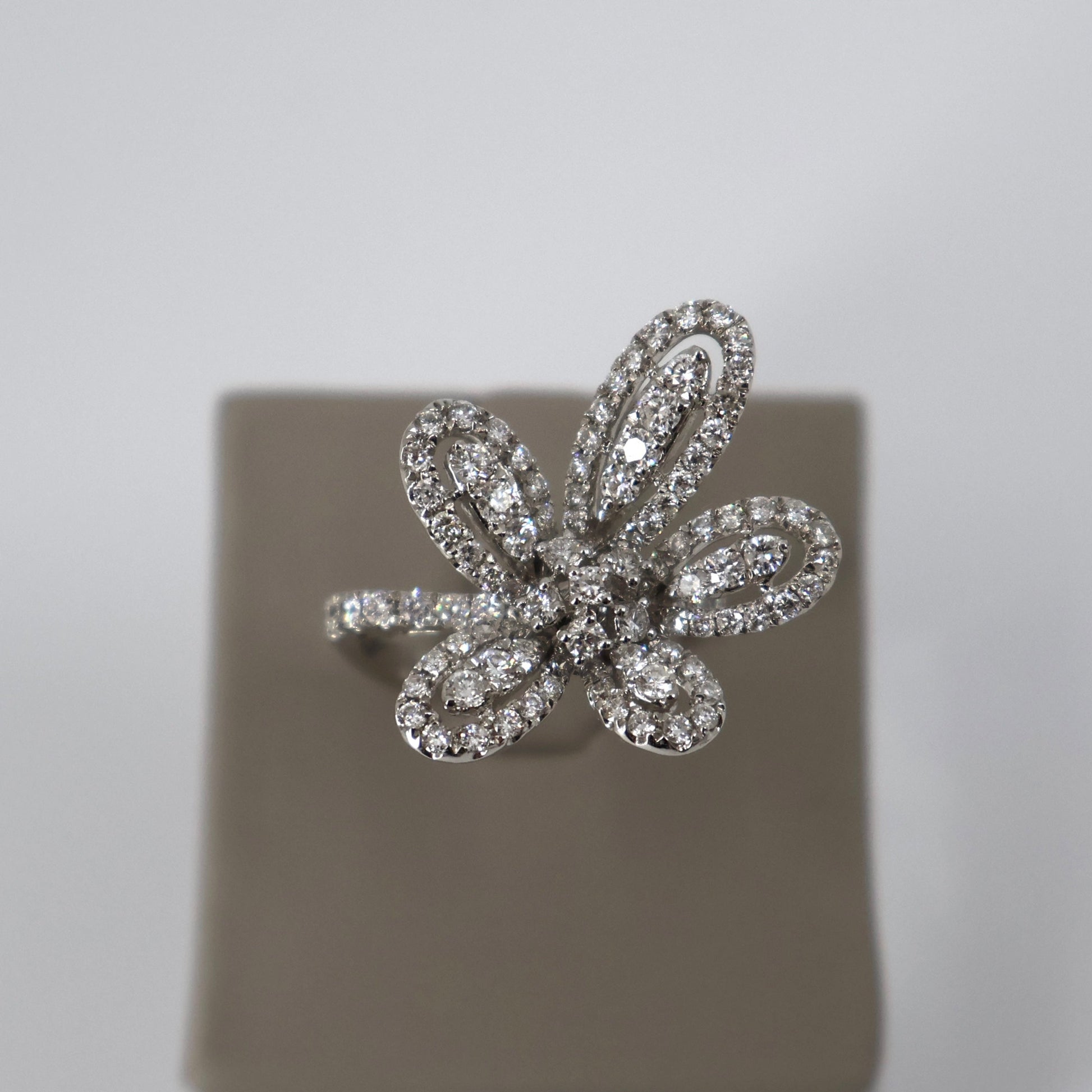 18KW 1.65CTW 104 ROUND DIAMOND PETALS DAISY RING