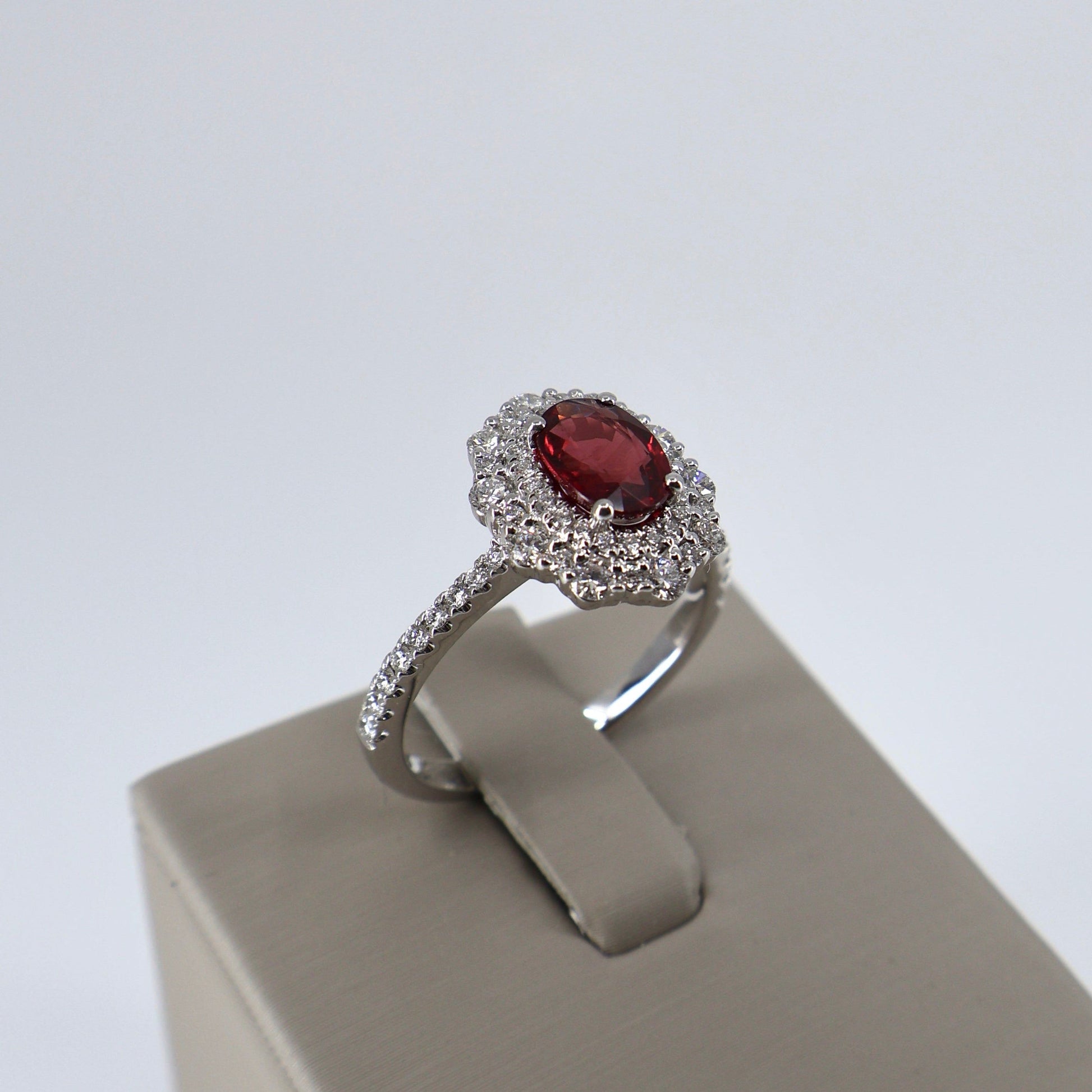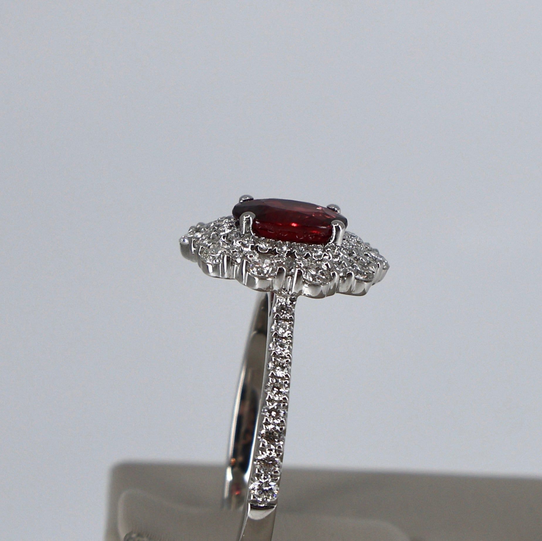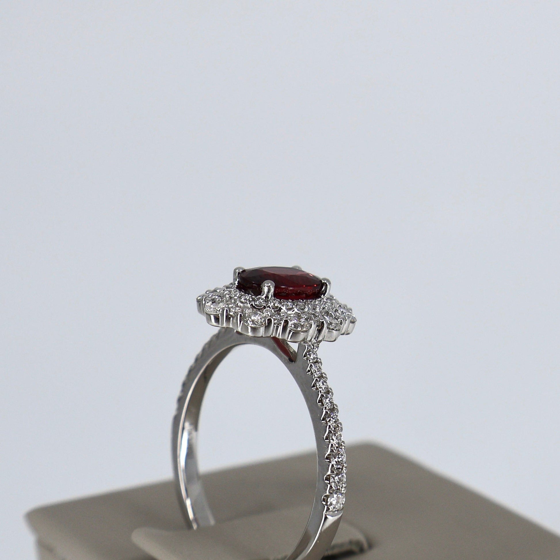 18KW .59CTW 60 ROUND DIAMOND / 1.00CT OVAL RUBY RING
