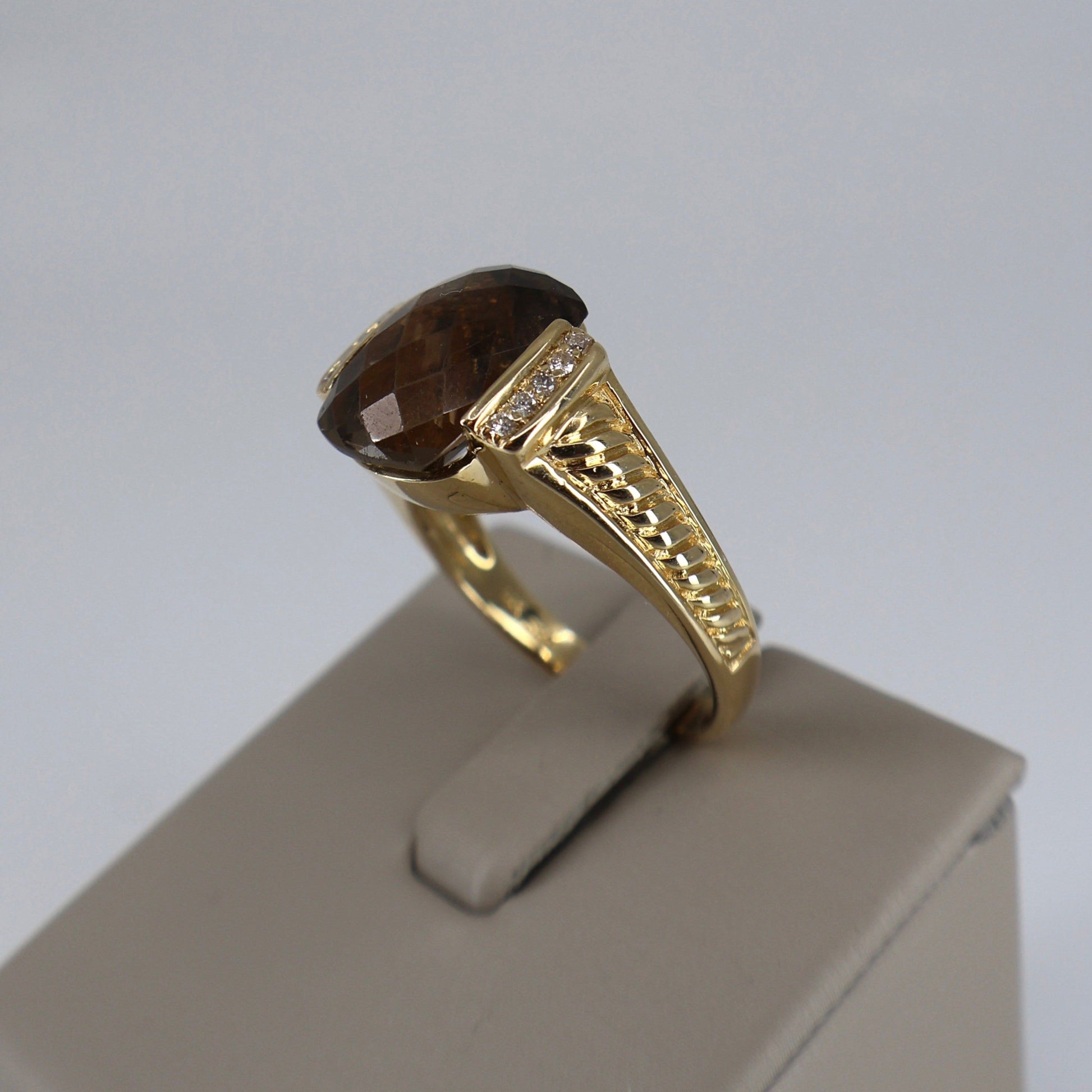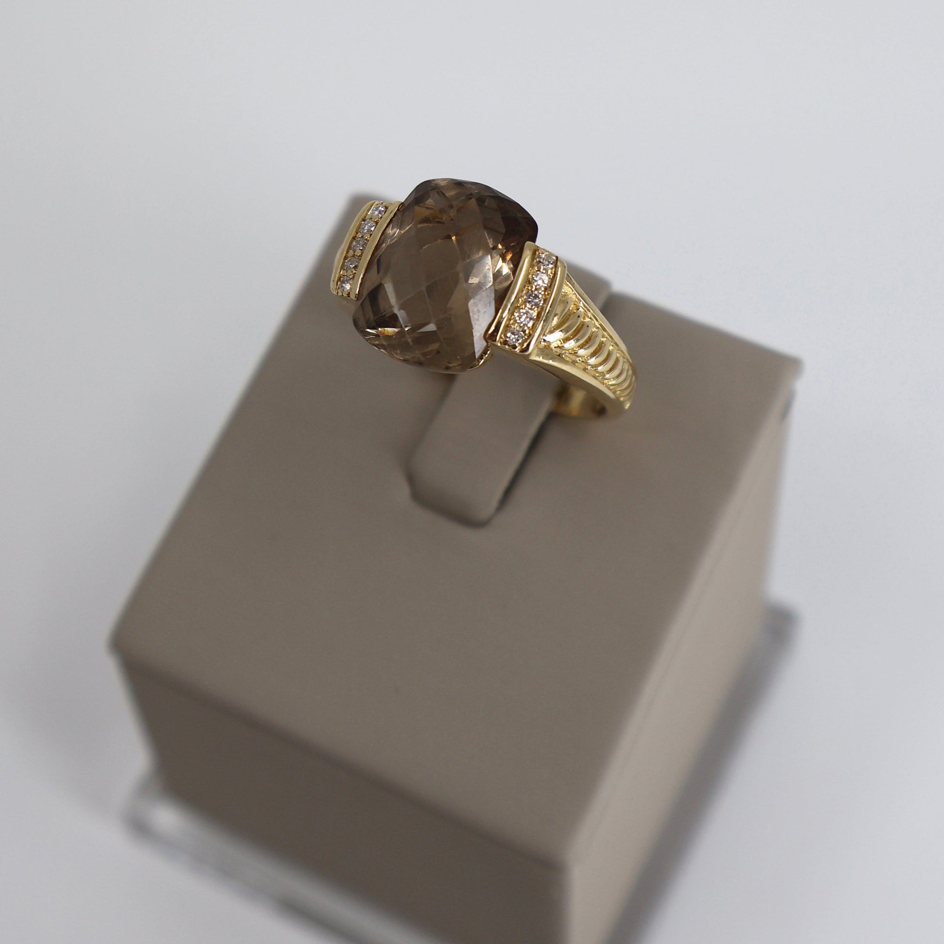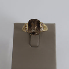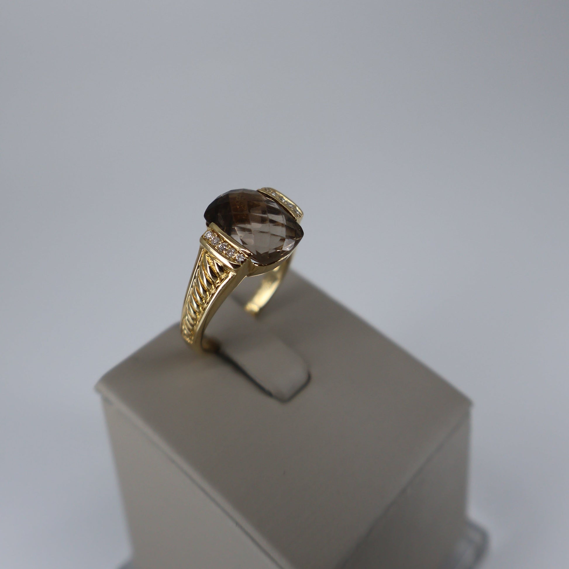 14K Two-Tone Gold Elongated Cushion-Cut Smoky Quartz and Diamond Ring OTC11159